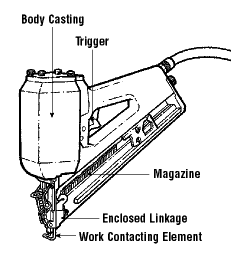 - Make sure that the mechanical linkage between the work-contacting element and the trigger is enclosed to prevent unintentional firing.