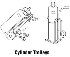 • Move cylinders with appropriate trolleys and secure the cylinders in an upright position.