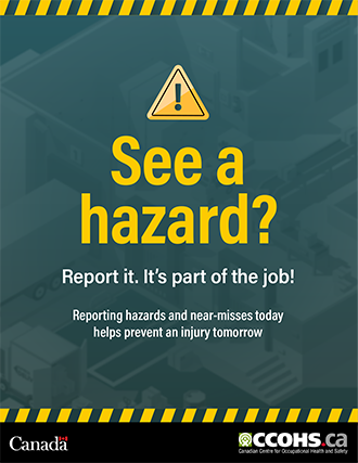 Display this poster throughout your workplace to remind workers that reporting a hazard or near-miss today helps prevent an injury tomorrow.