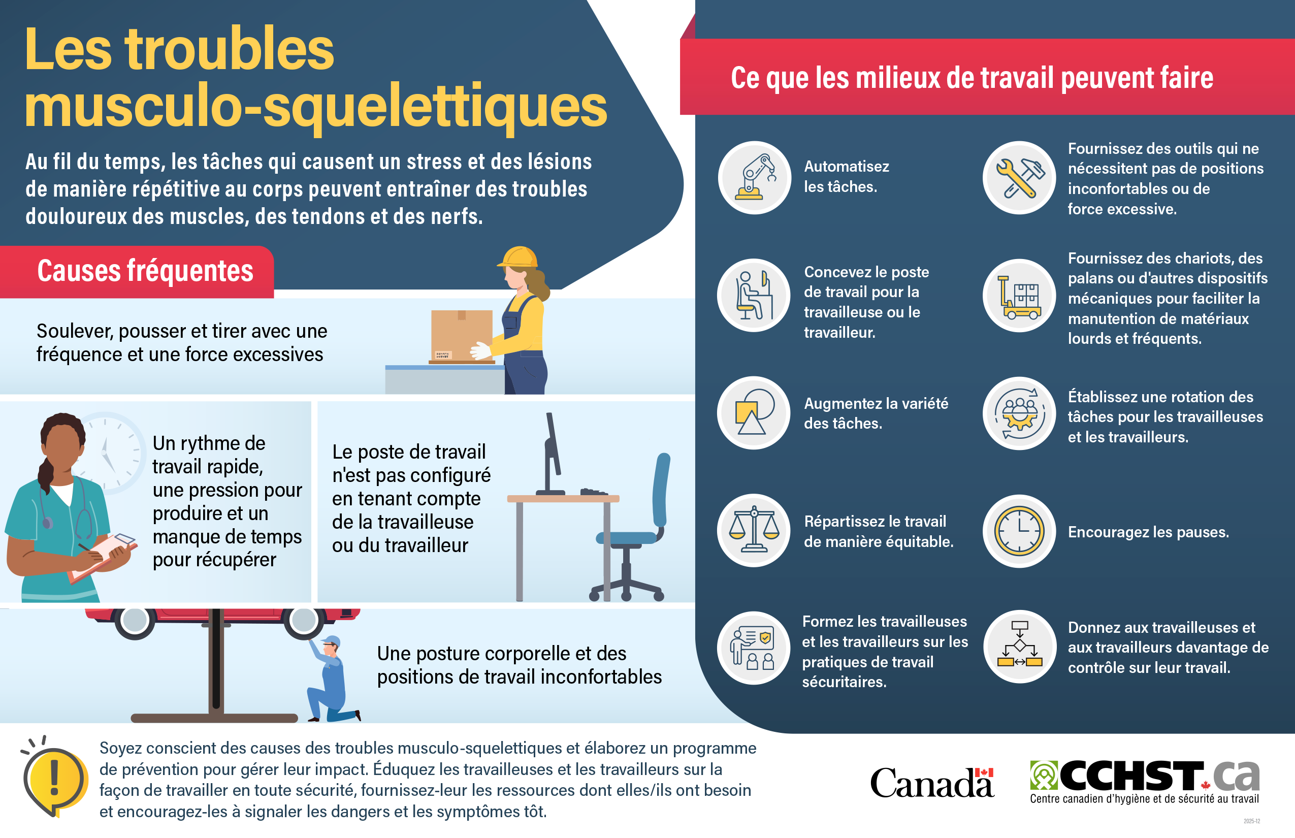 Share this infographic to raise awareness about common causes and some actions employers can take to address this issue, including developing a prevention program and encouraging early reporting from workers.