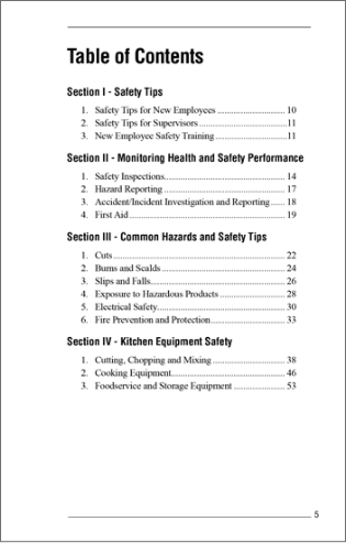 This guide is for anyone who works in food preparation and foodservice organizations such as hotels, restaurants, catering facilities, commercial kitchens and fast food establishments. It's a handy work companion for workers, supervisors, managers, and health and safety committee members.